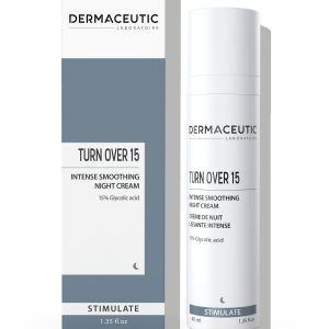 Turn Over 15, najnoviji proizvod u liniji Stimulate, osmišljen je kao nadopuna kremi Turn Over 10. Zahvaljujući višoj koncentraciji čiste glikolne kiseline (15 %), Turn Over 15 pruža intenzivnije eksfolijacijsko i zaglađujuće djelovanje te cilja naprednije znakove starenja kože. Iz noći u noć pomaže otkriti vidljivo glađu i blistaviju kožu.