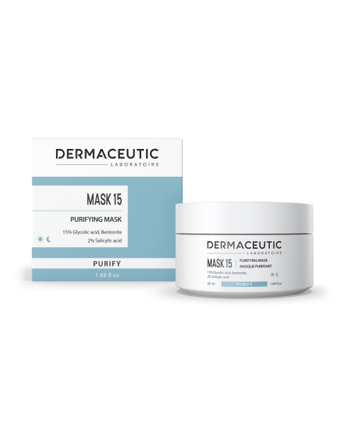 Maska 15 je jedinstvena piling maska za kućnu upotrebu. Sadrži 15% glikolne kiseline, 2% salicilne kiseline i bentonit glinu. Uklanja mrtve stanice i višak sebuma, čisti epidermu i pore, matira kožu, sužava pore. Posebno je pogodna za mješovitu, masnu kožu, nečistu, kožu sklonu aknama.