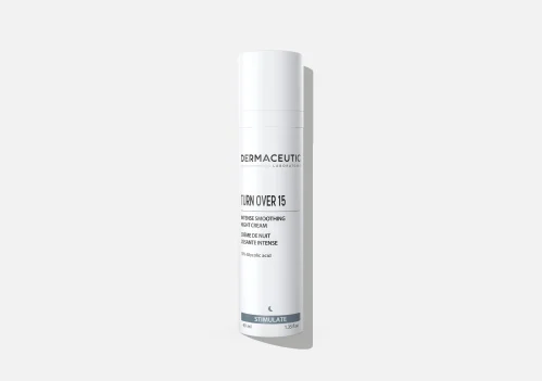 Turn Over je intenzivna noćna krema koja djeluje na cjelovitu obnovu kože te poboljšanje tonusa kože. Uklanja znakove starenja i zaglađuje bore. Zahvaljujući višoj koncentraciji čiste glikolne kiseline, Turn Over 15 pruža intenzivniji piling i zaglađivanje kako bi smanjio naprednije znakove starenja. Bez parabena i bez parfema.